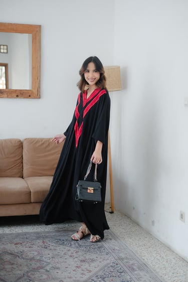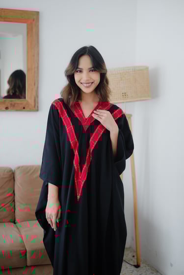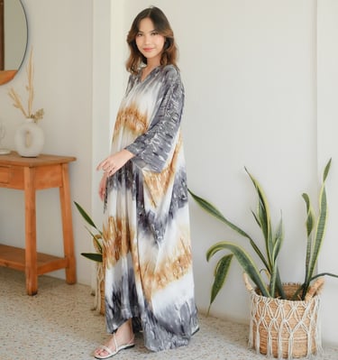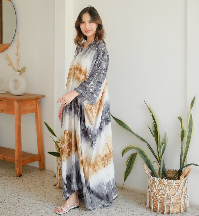 Daster kaftan Findmeera nyaman dan adem, cocok untuk berbagai momen. Desainnya menarik dan khas!